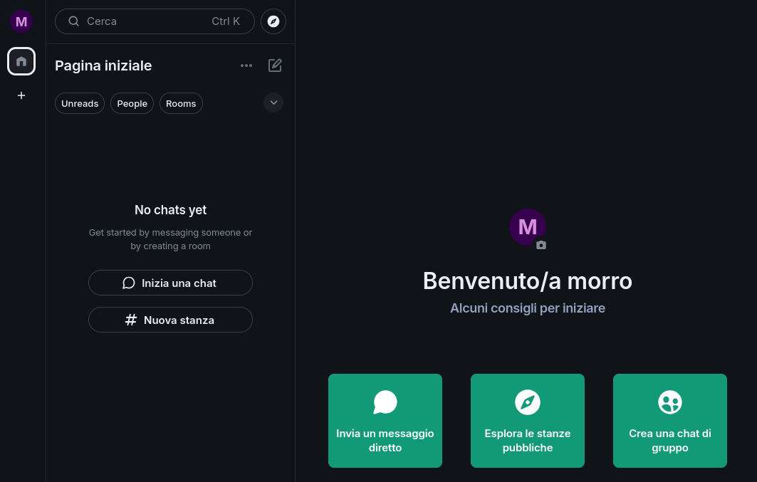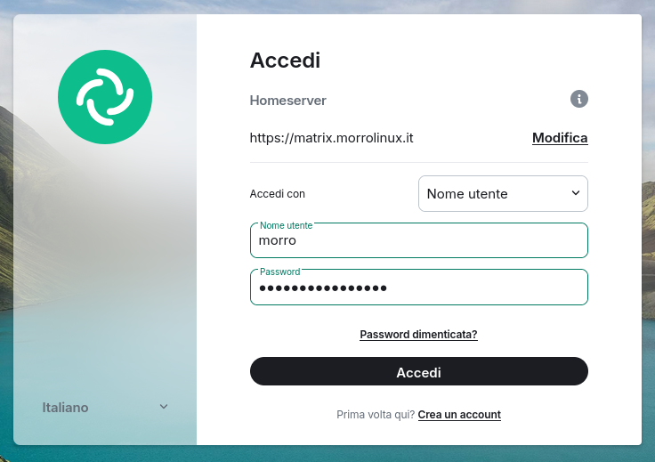 Ora puoi provare il login con un client Matrix.Creazione di utenti non privilegiati